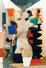 Degravitating Nude 1989 100x300 acrylic on curtain (sold)